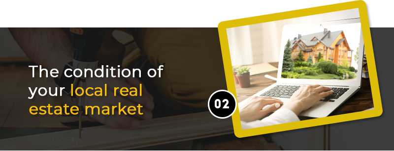 Another major factor you need to consider is the condition of your local real estate market. It's truly a case-by-case study in the market now as each one is different.